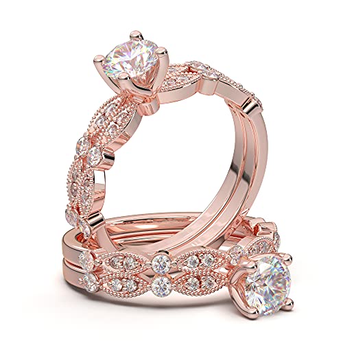 Amazon Com 14k Rose Gold Vintage Bridal Set Engagement Set Vintage Milgrain Engagement Set Art Deco Antique Bridal Set Forever One Colorless Moissanite Center Ring For Her Handmade Products